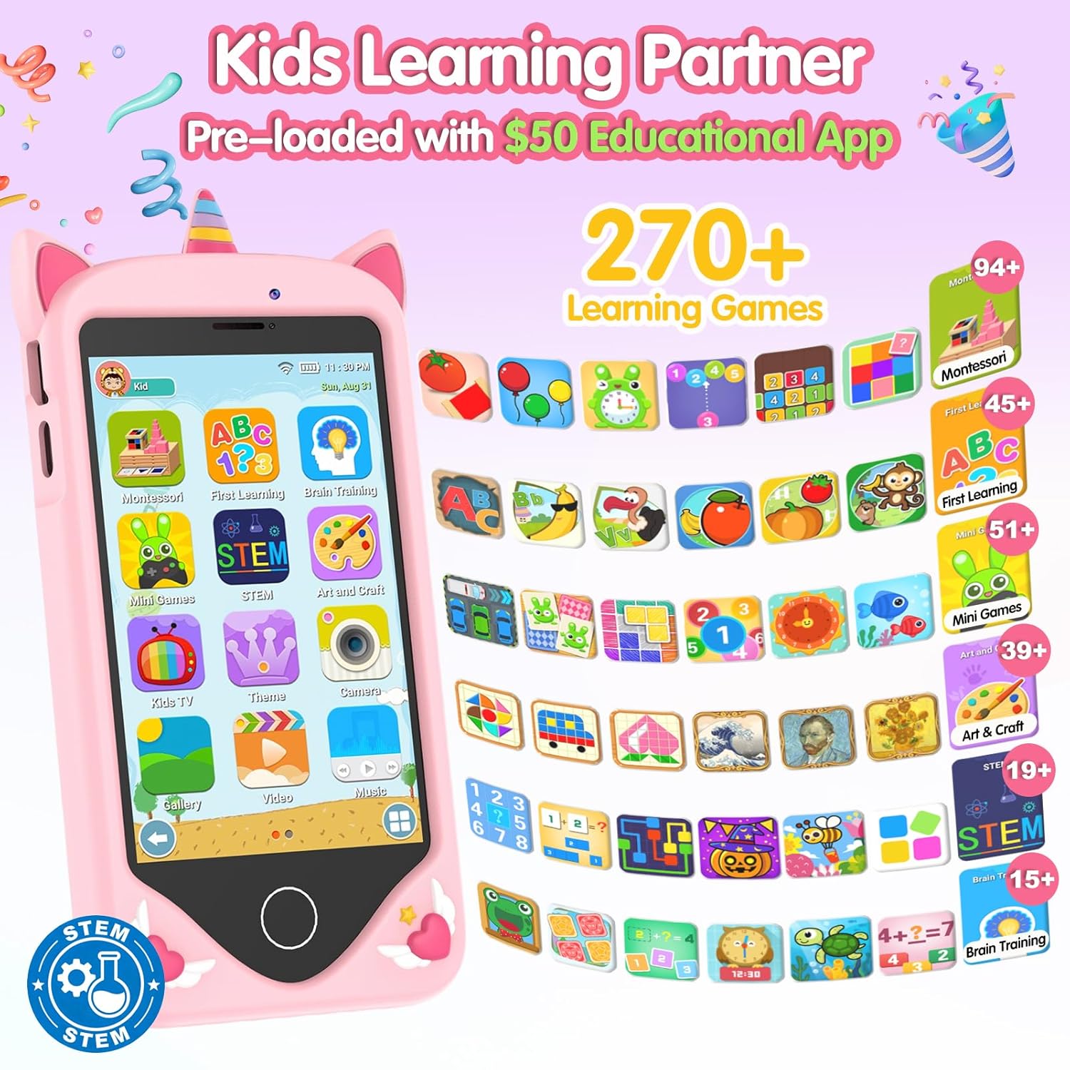 Big Screen ,48GB Storage ,24H Standby ,Phone ,Text ,Camera ,Games ,Video ,Music ,Free Learning App |