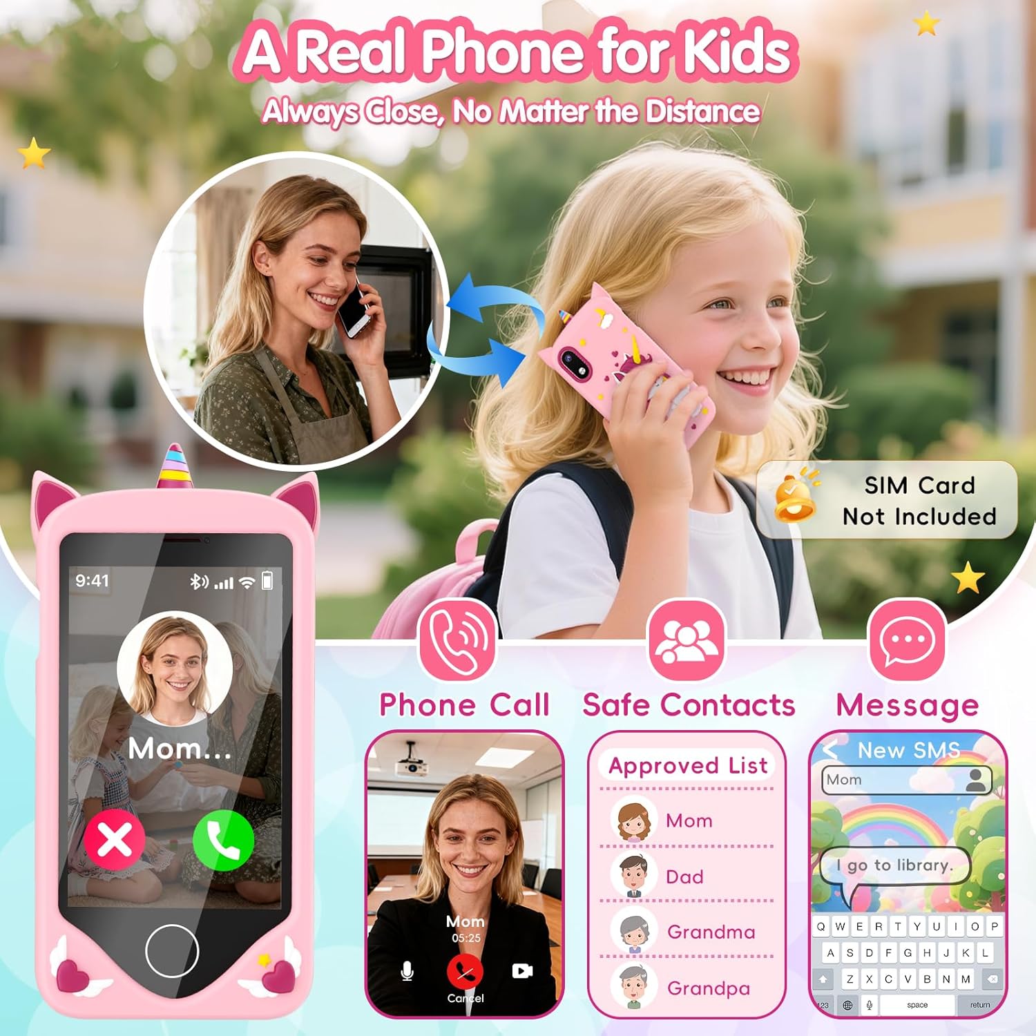 1* User Guide ,1*32GB SD Card(Pre-installed in the phone) ,1*Kids Phone ,1*Lanyard ,1*Type-C Cable |
